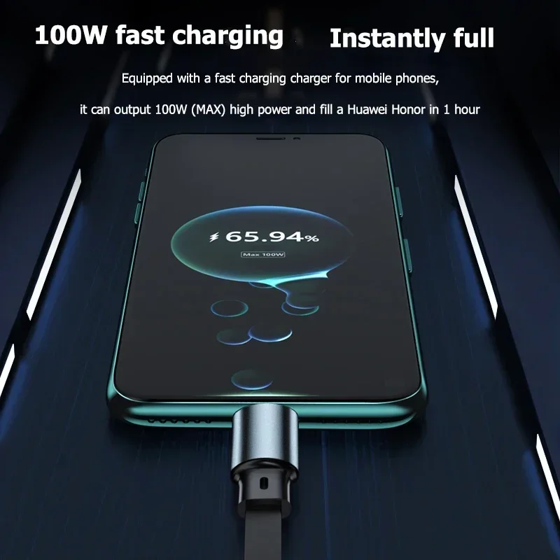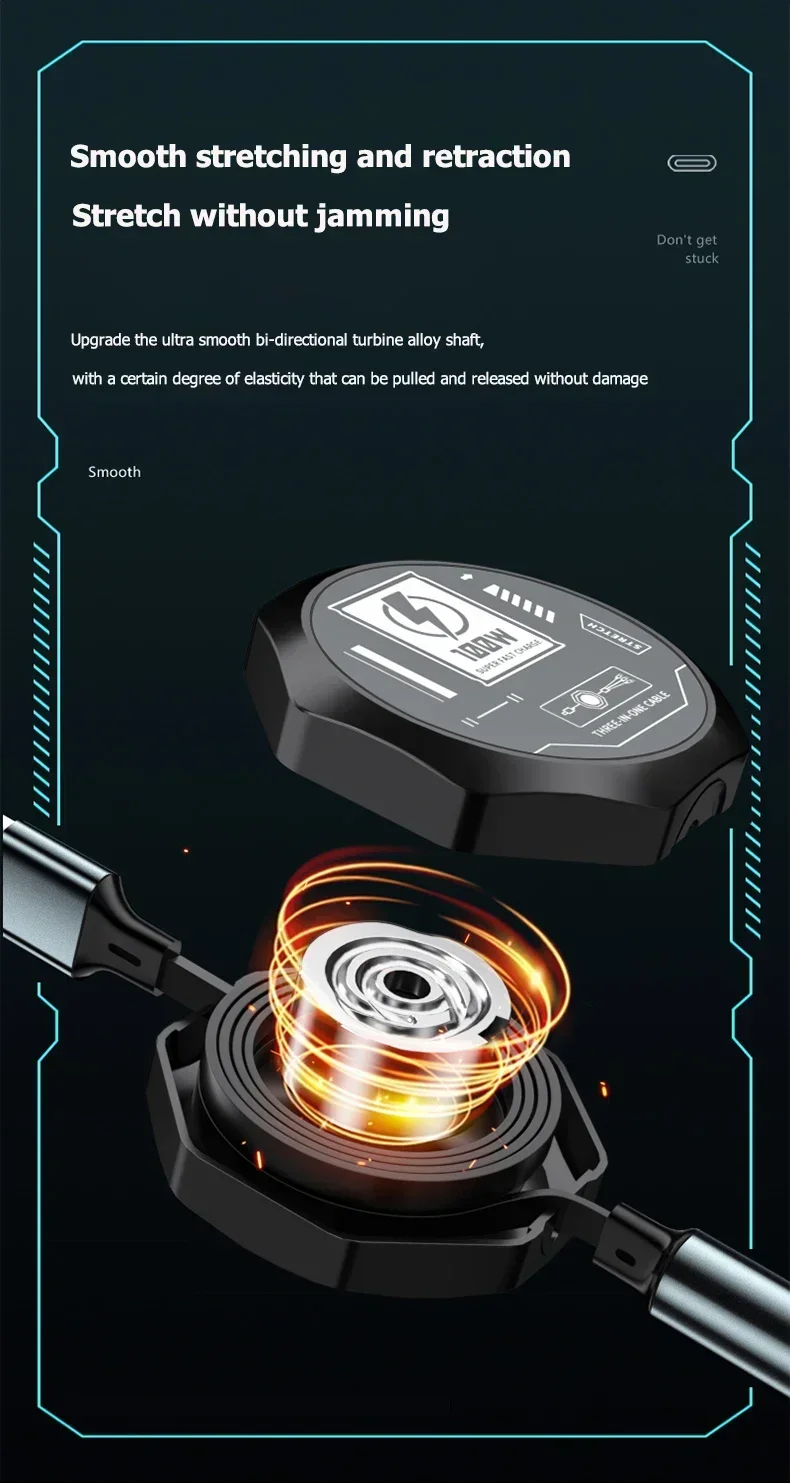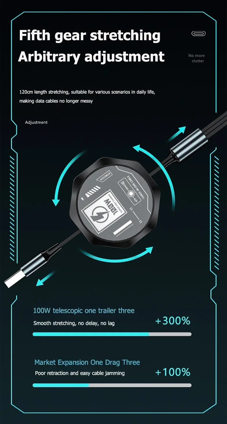 100W 3 In 1 Retractable Usb Cable Fast Charging And Data Micro Usb Type C For Iphone 15 14 13 Pro Max Android Phone Xiaomi Cable