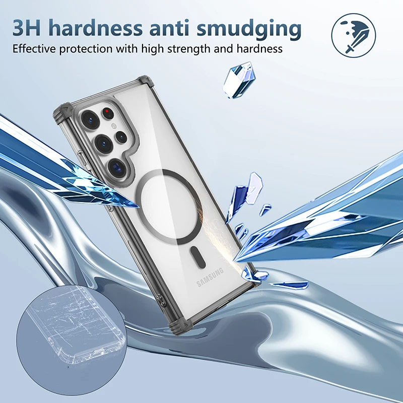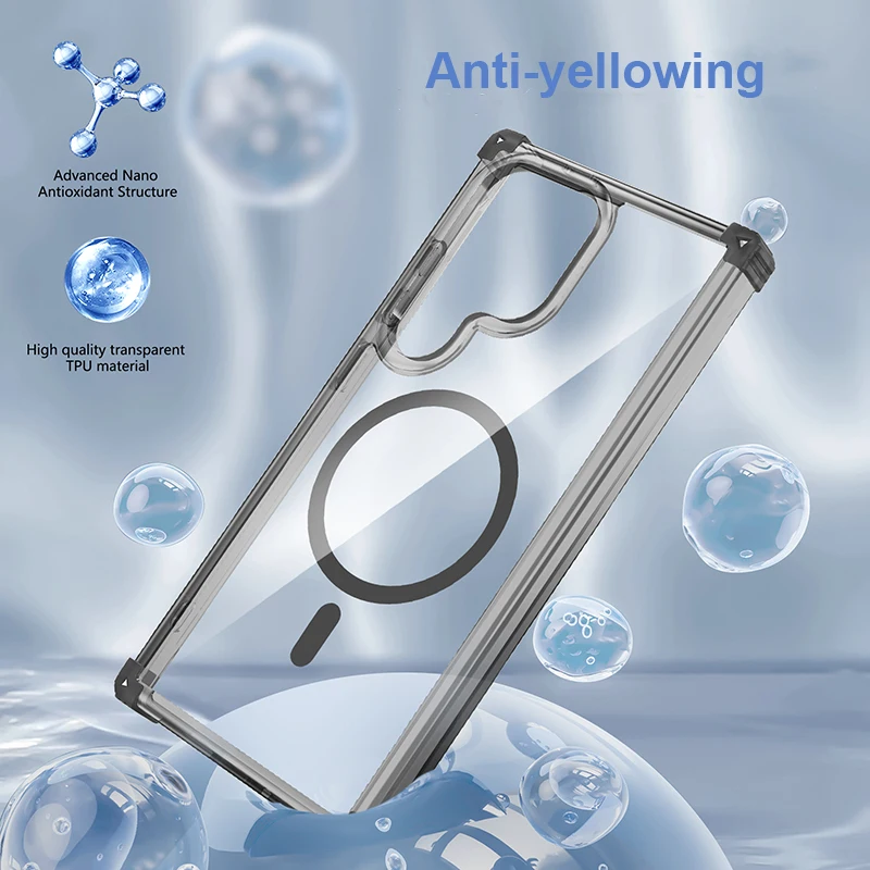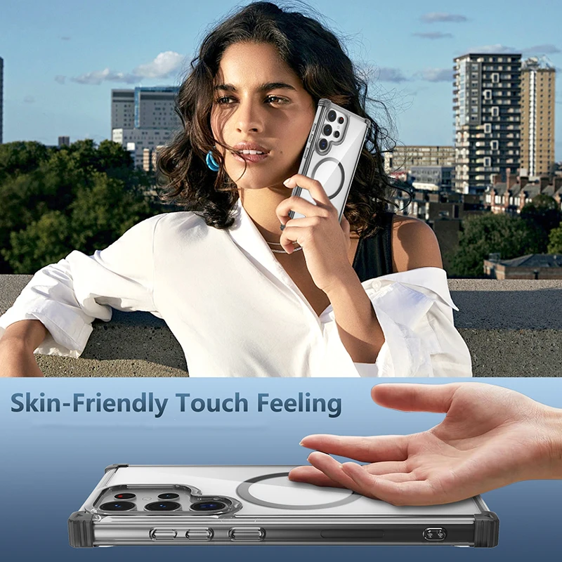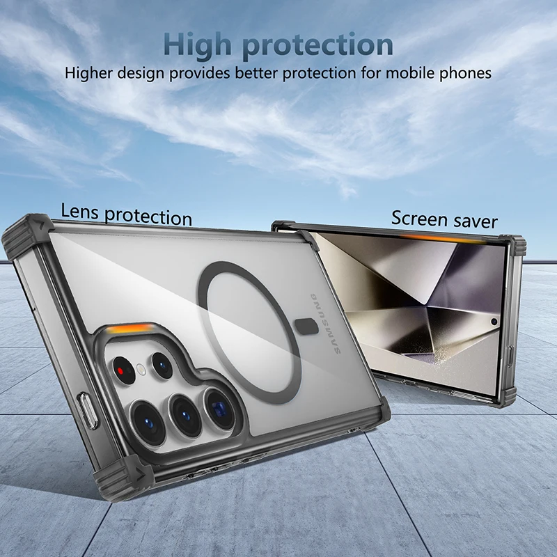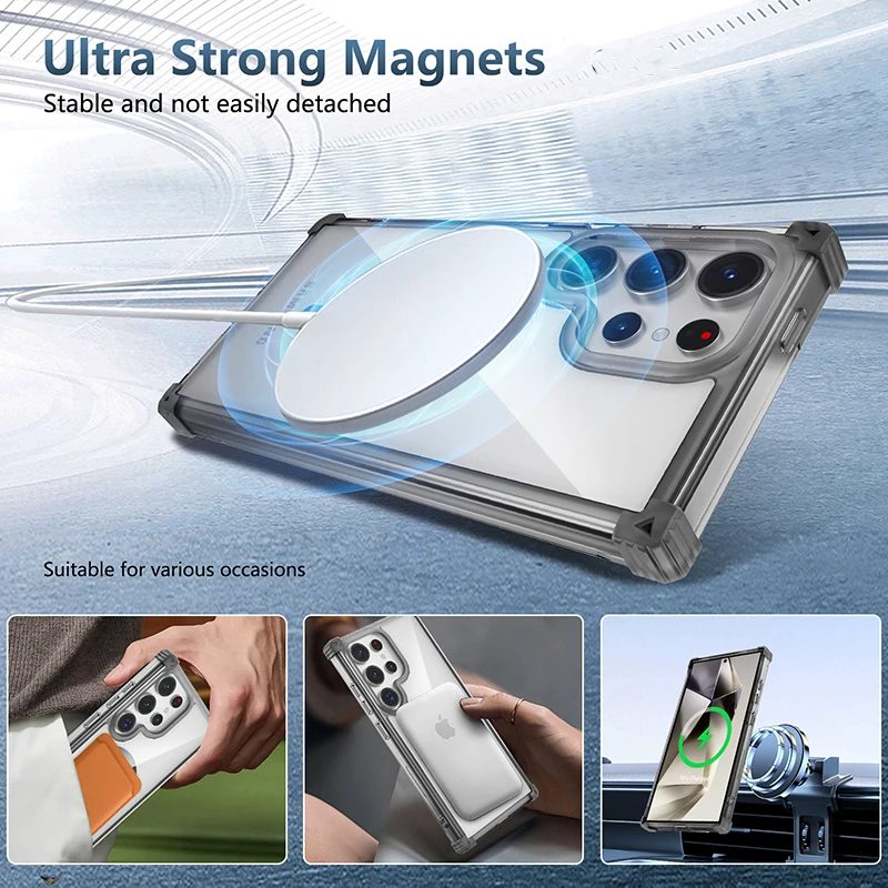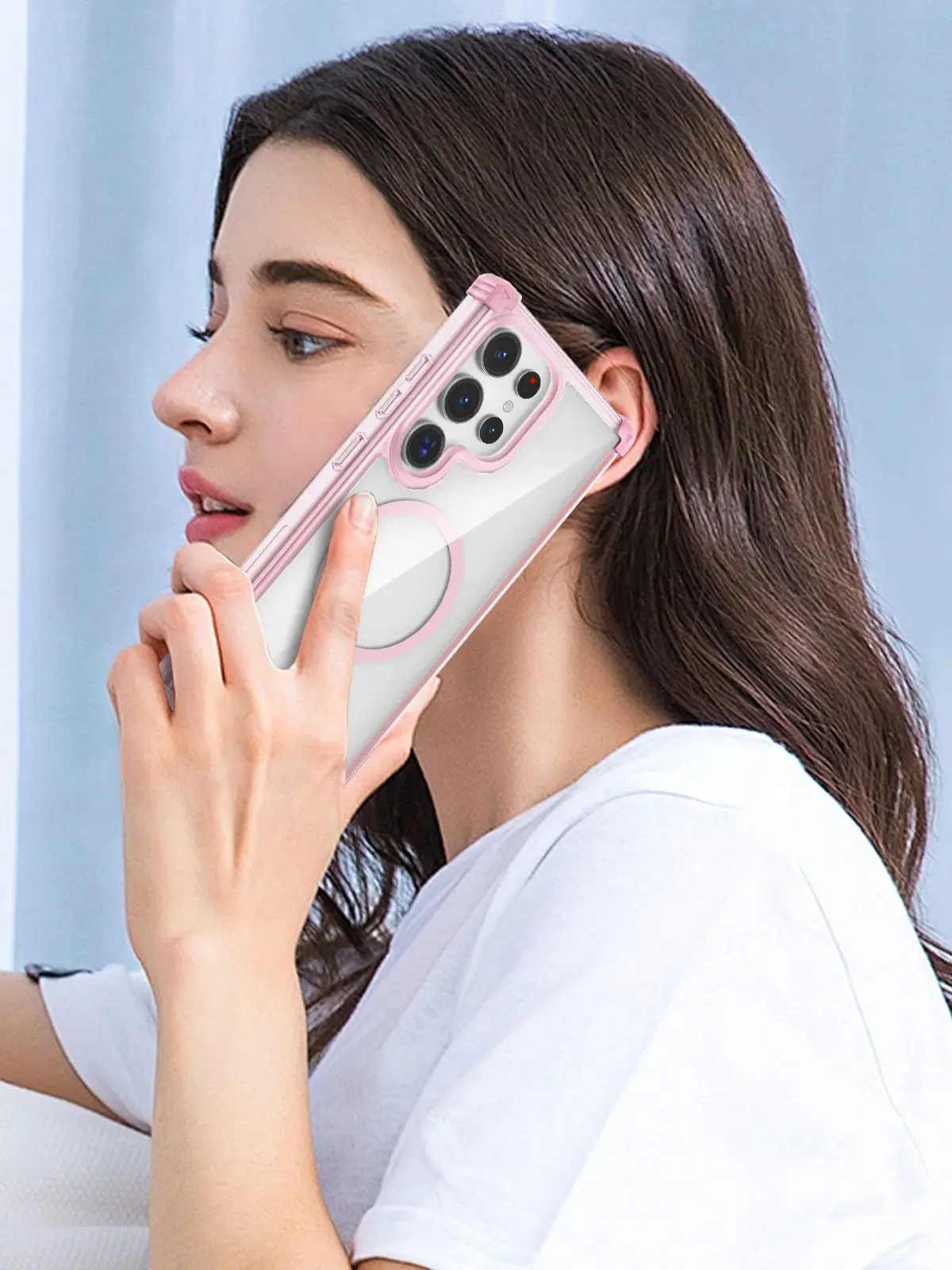 "Magnetic Transparent Phone Covers for Galaxy S22 S23 S24 Ultra Plus[Compatible with Magsafe] Four Corners Protection Wireless Charging Phone Covers Anti Yellowing Shockproof Phone Shells"