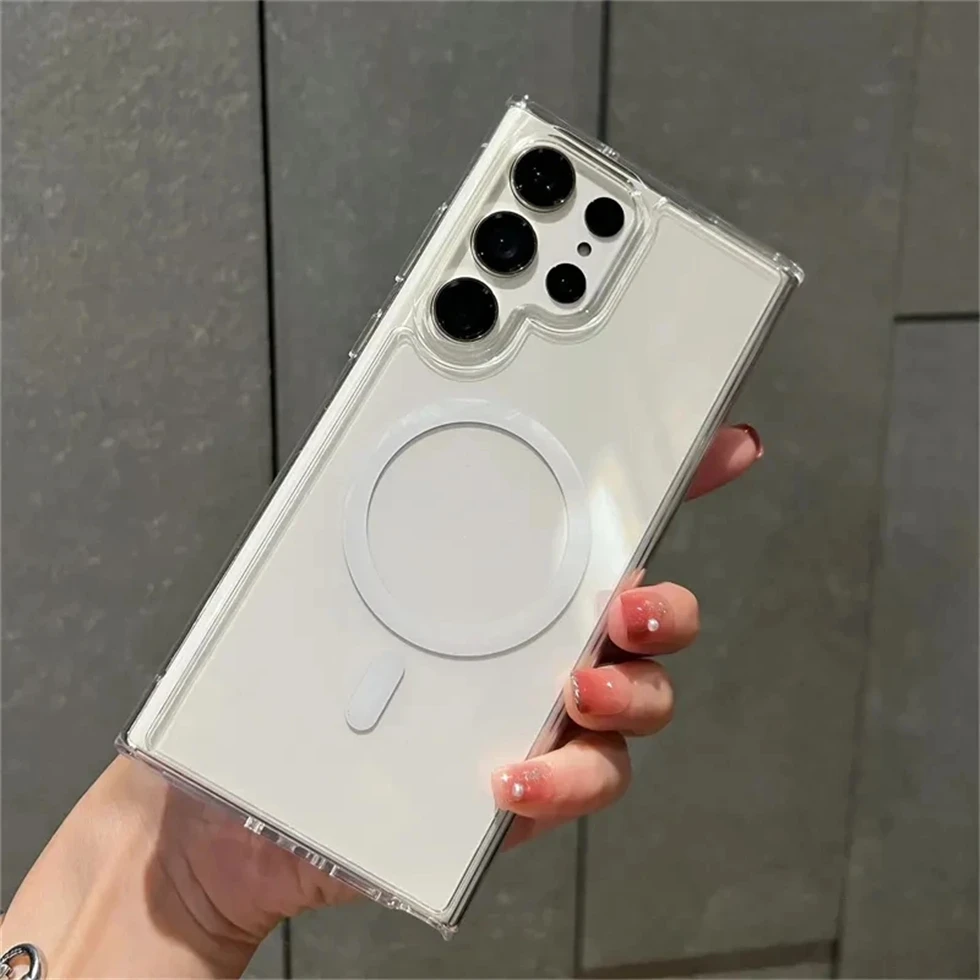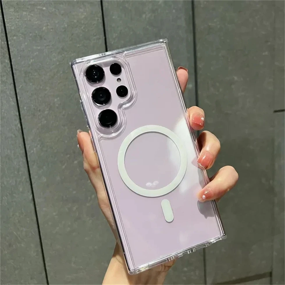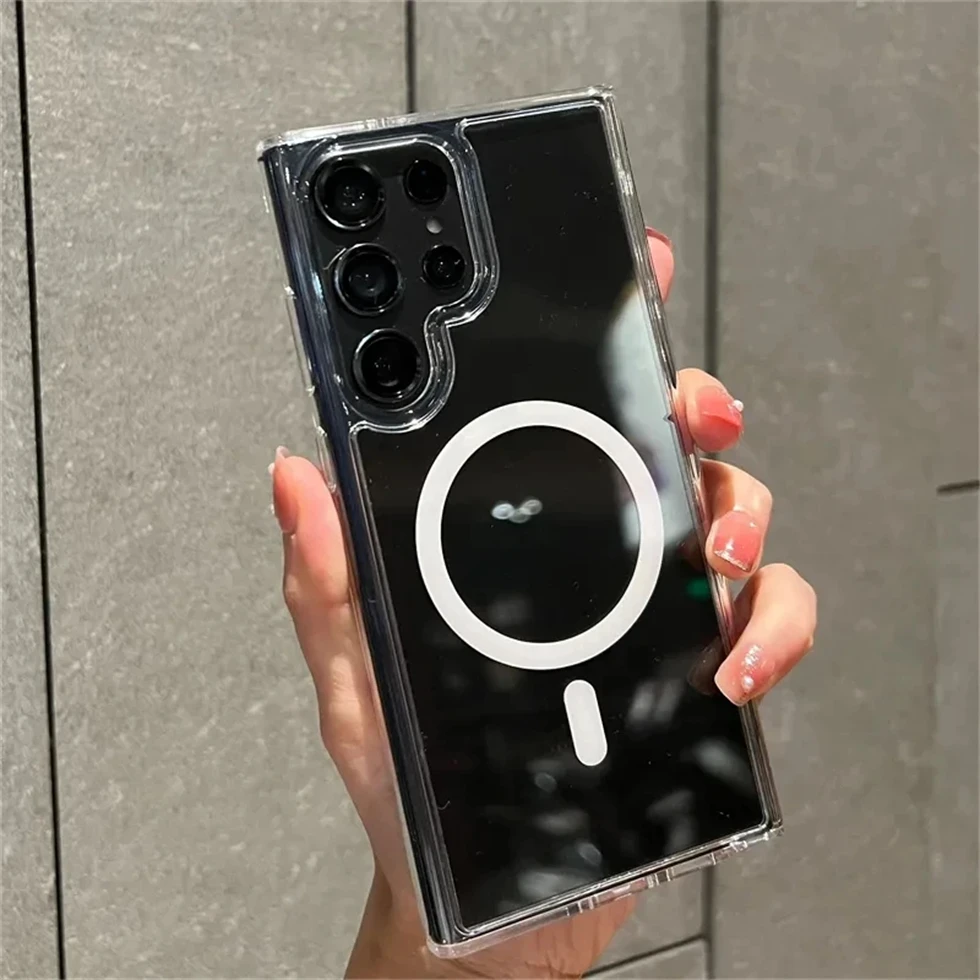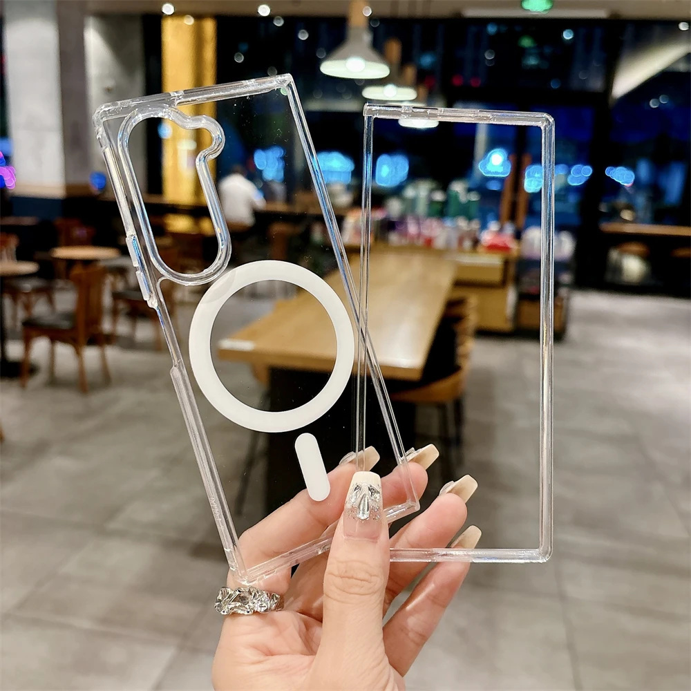 For Galaxy Wireless Magnetic Clear Case Samsung S25 S23 S21 Fe S24 Ultra S22 Plus Z Fold Flip 6 5 4 3 Magsafe Magnets Cover