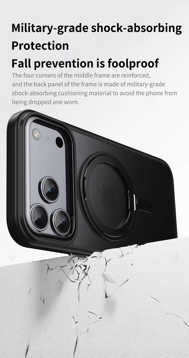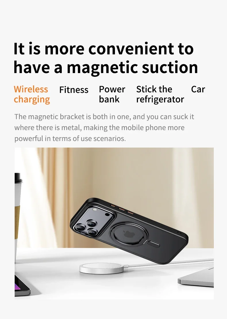 Metal Ring Stand Matte Magnetic Case For Magsafe For iPhone 17 Air 16 15 14 13 Pro Max Plus Wireless Charging Shockproof Cover