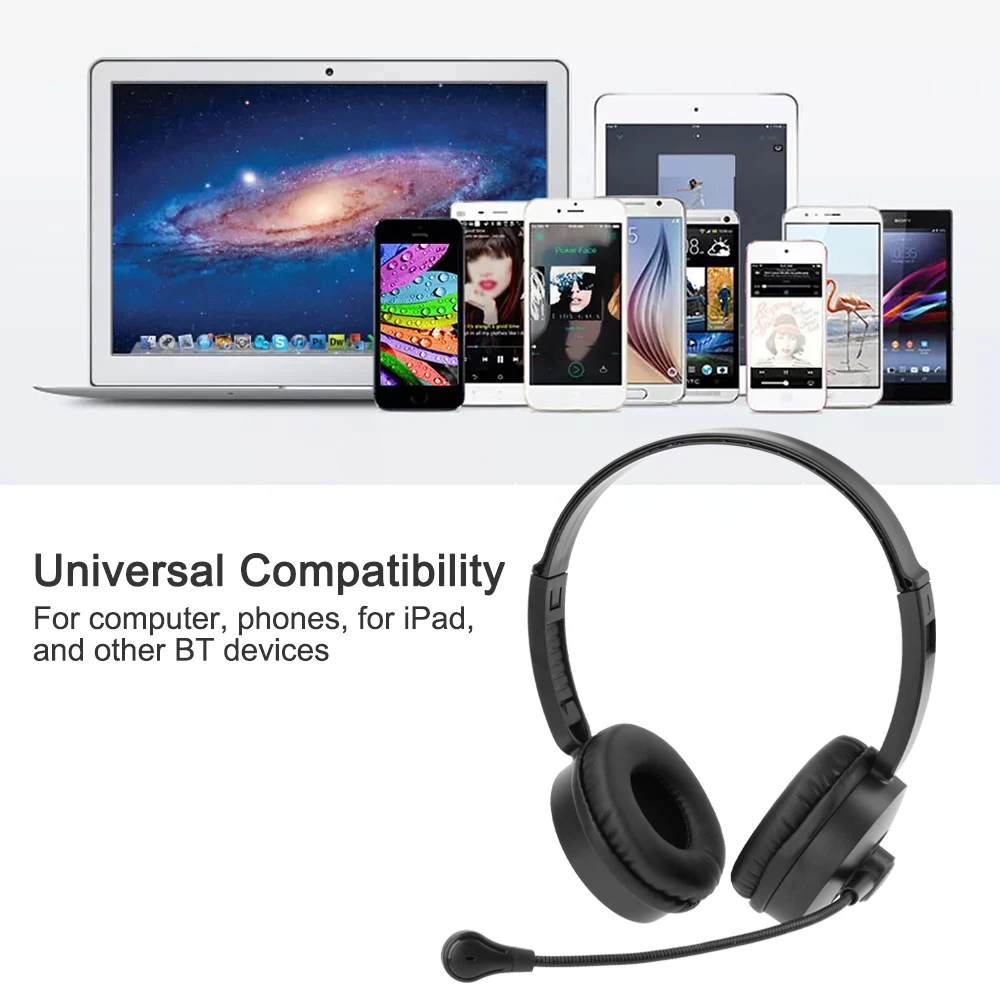 Headset Wireless Bluetooth 5.0 Headset With Noise Cancelling Microphone Ideal For Truck Drivers, Offices, Call Centre Work
