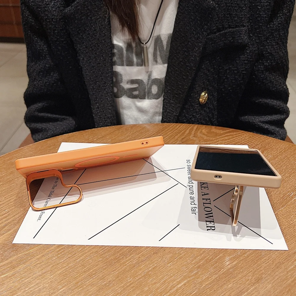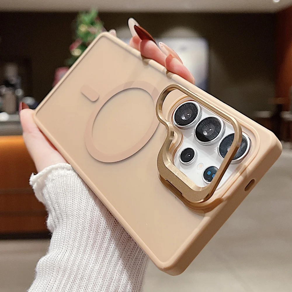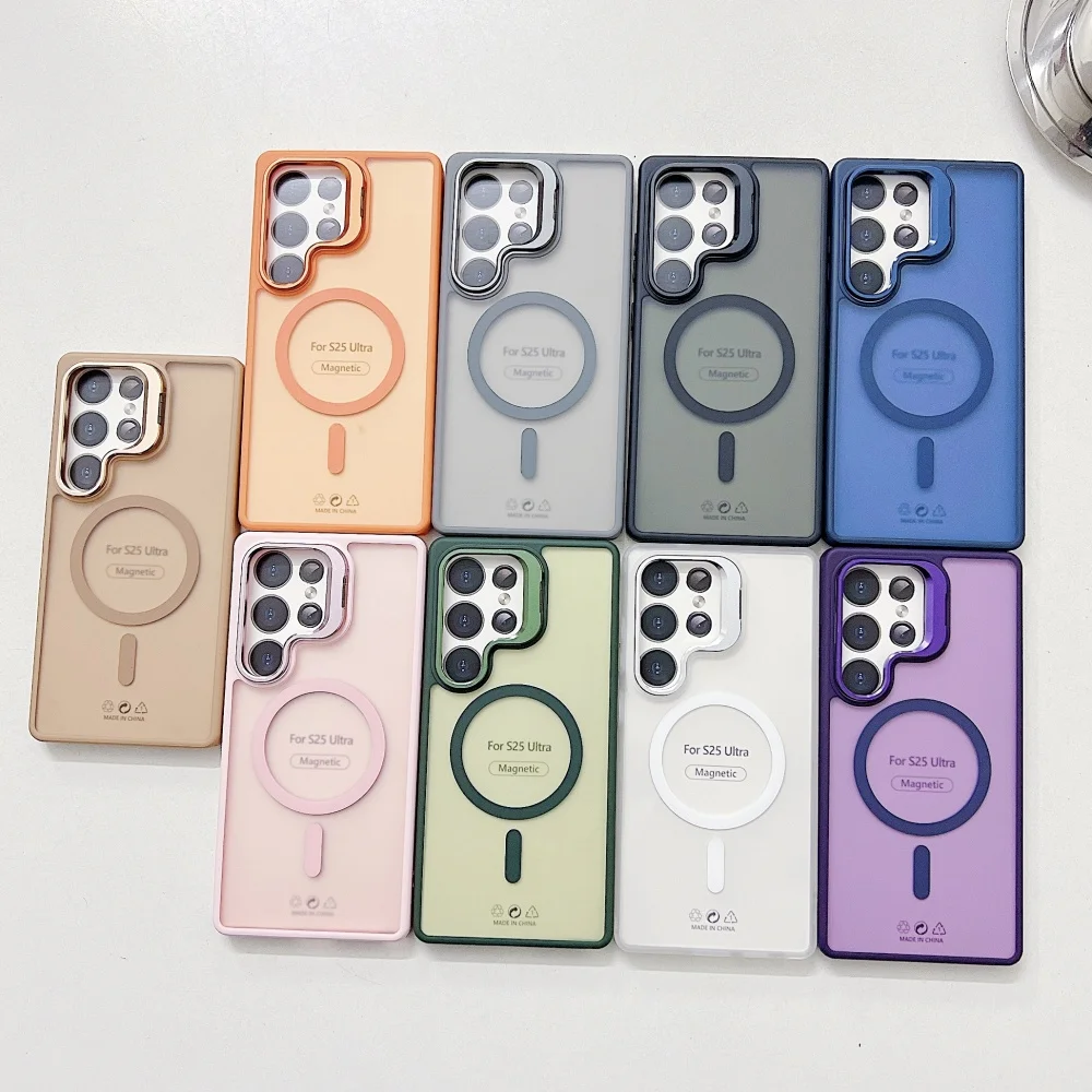 Magnetic Transparent Metal Lens Stand Matte Case Samsung Galaxy S25 S24 FE S23 S22 Ultra Plus Acrylic Clear Shockproof Cover