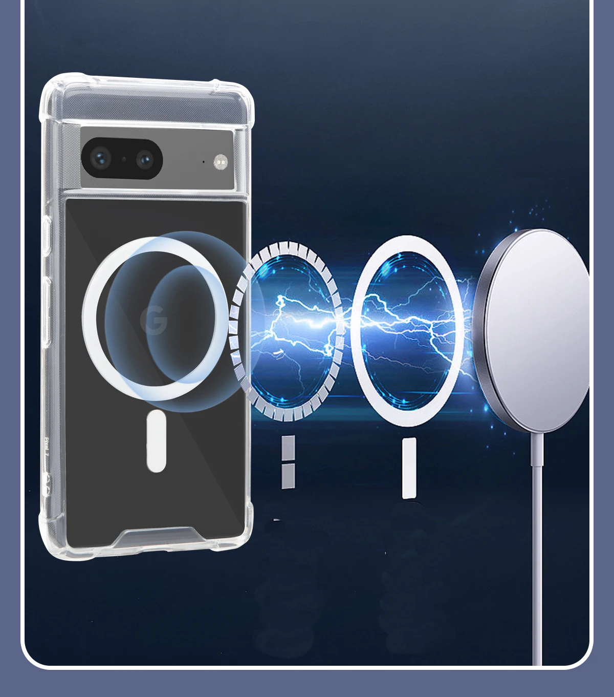 Transparent Phone Case For Google Pixel 8 7 6 Pro Clear Shockproof Magnetic case For Magsafe Case Google Pixel 8 7 6 6A 7A Cover