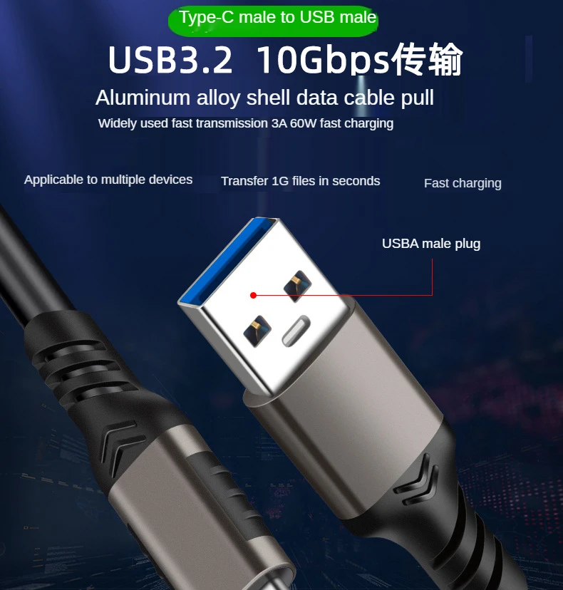 Usb A To Usb C 3.1/3.2 Gen 2 Cable 10Gbps Data Transfer, Short Usb C Ssd Cable With 60W Qc 3.0 Fast Charging, Spare Cable